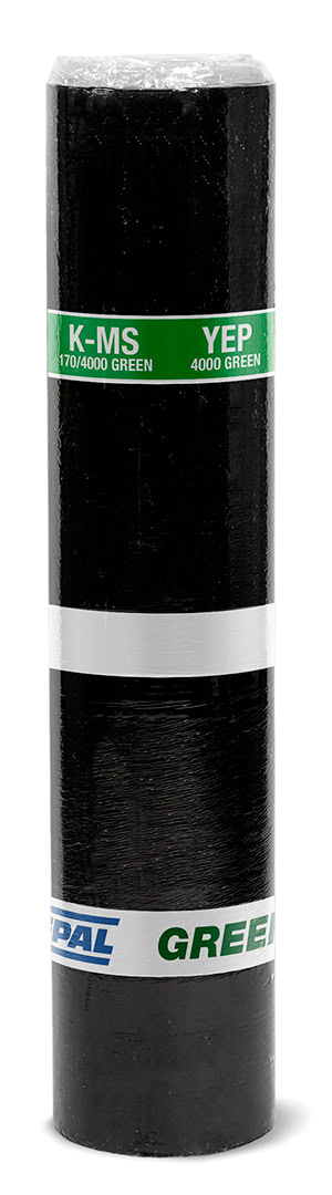 Katepal YEP 4000 Green är en stark bitumenmenbran för flera olika användningsområden. Den är uppbyggd på en polyesterstomme och belagd med svetsbitumen på undersidan.